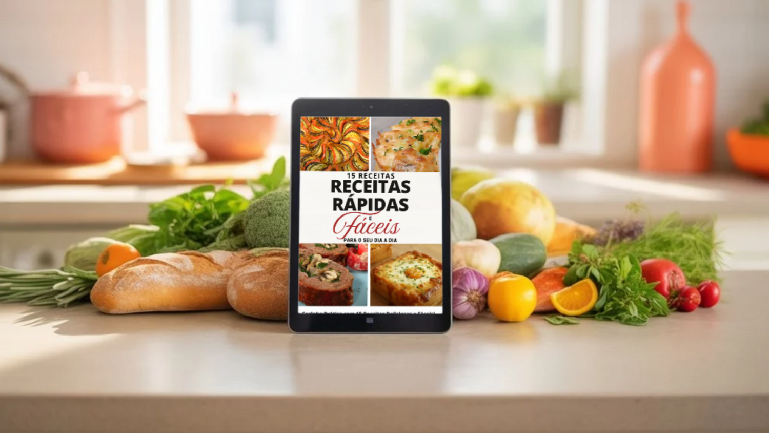 15 receitas Rápidas e Fáceis para o seu dia a dia, com organização pensada para quem quer mais sabor, leveza e liberdade. Ideal para quem vive na correria, mas não abre mão de cuidar bem de si e da casa.